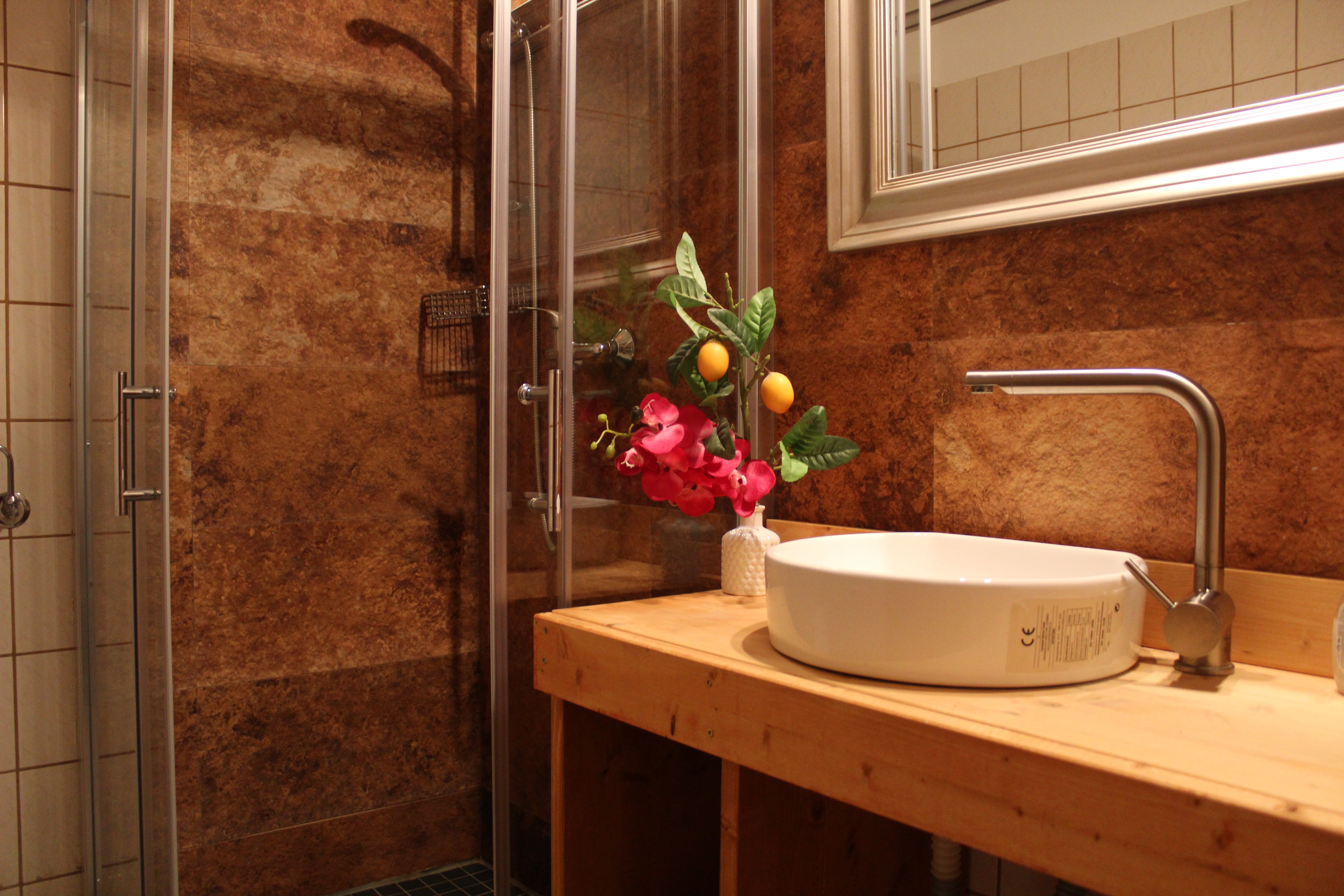 Ein Apartment mit Doppelzimmer, Einzelzimmer und großem Badezimmer
