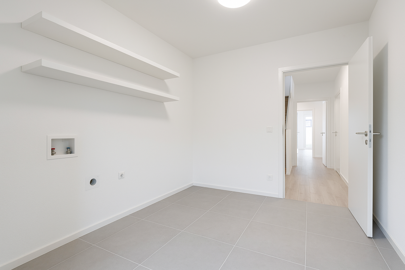 Hauswirtschaftsraum mit Anschlüssen für Waschmaschine & Trockner
