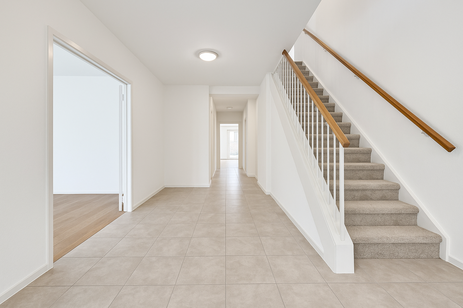 Diese Immobilie ist ab November 2025 vollständig bezugsfertig und präsentiert sich in perfektem Zustand – hell, einladend und mit einer harmonischen Raumaufteilung auf zwei Etagen.